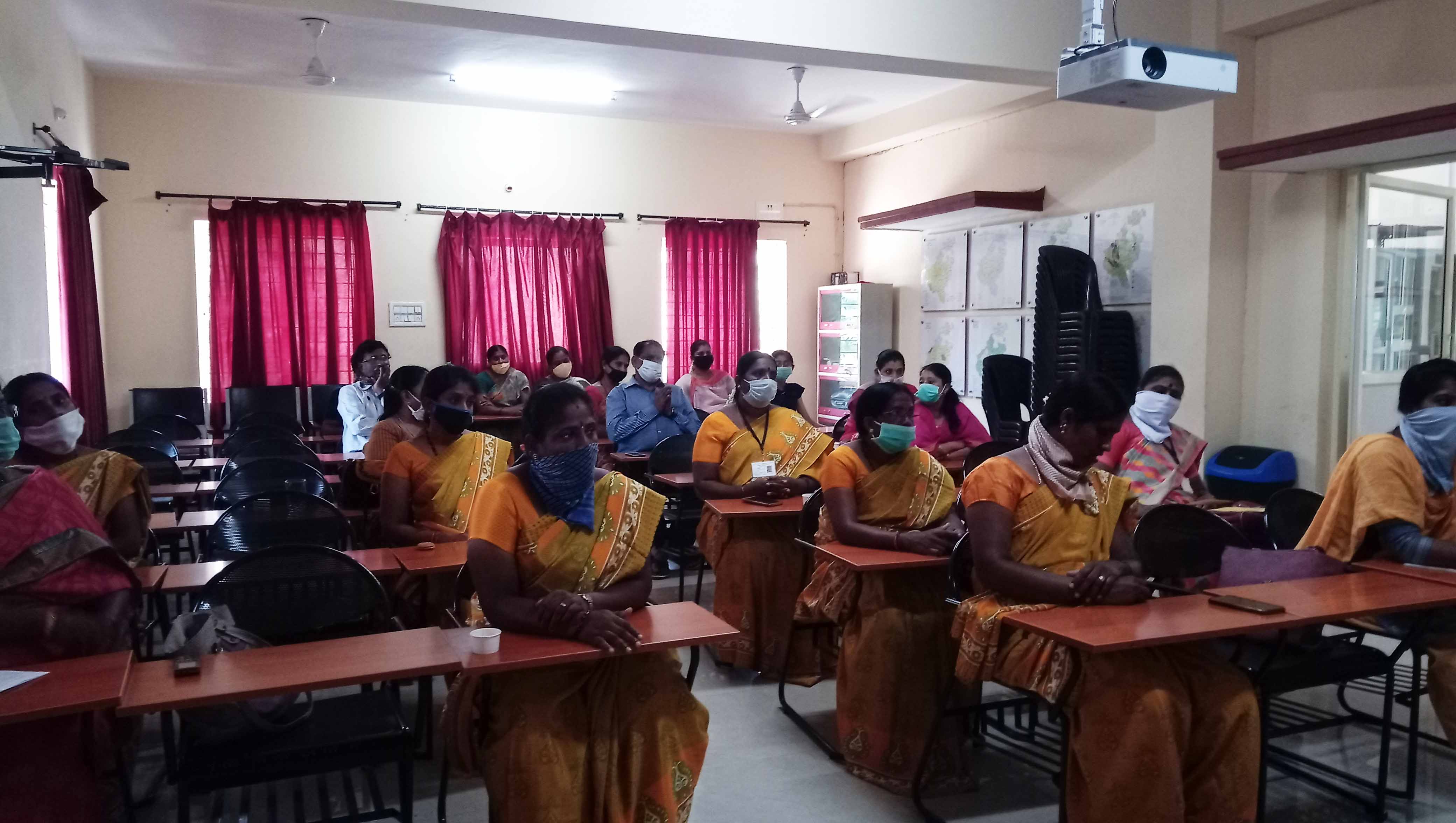 ICAR-Krishi Vigyan Kendra, Hirehalli, Tumkuru, in collaboration with Spirulina Foundation, Tumakuru, has organized one day Awareness cum Training Programme on immunity boosting aspects Spirulina algae on 27-05-2020 at the KVK campus. This programme has been conceived to deal with the present Covid-19 challenges and to show the income generating avenues to the Women SHG members of the district. About 15 women from Sri Lakhsmi SHG of Kesaramadu Gram Panchayat, Tumakuru, participated in the programme. Mr RV Mahesh from Spirulina Foundation, Tumakuru, participated in the event as the resource person and shared his knowledge on all the aspects of Spirulina, covering nutritional values of the algae, methods of food production, business model, further training at CFTRI, Mysore, etc. The methods of producing the Spirulina algae and preparation of Chikki sweet by incorporating the algae were the subjects dealt with the trainees in detail. Some of the staff from NGOs like Navya Disha, Mahathma Gandhi Rural Foundation also took part in the programme along with few organic farmers and KVK staff.