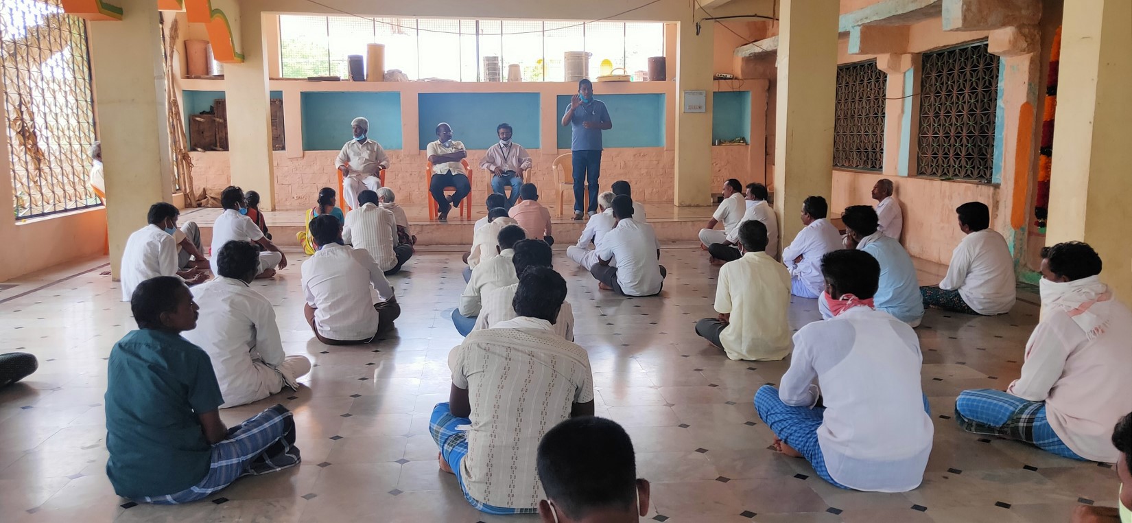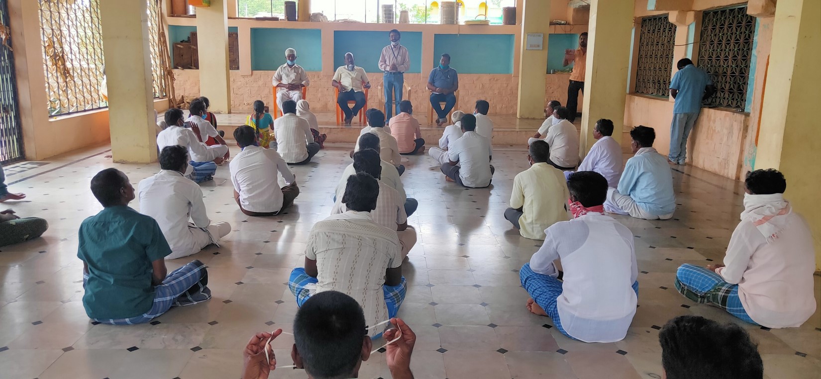 As per the instruction from the Director IIHR, an awareness programme was organised on 22nd June 2020 at Rangasamudra village of Pavagada taluk Tumkur District. Madakari FPO and their staff were requested to mobilize the farmers and about 50 farmers took part in this program. Sri Siva Prasad, member IMC, and Dr Loganathan. Head KVK, and MR Prasanth, SMS Horticulture, briefed about the support under TSP project. Farmers expressed their concern about the project and many of them got cleared their doubts on interaction with the experts. Later, the team visited the Groundnut field under CFLD project.