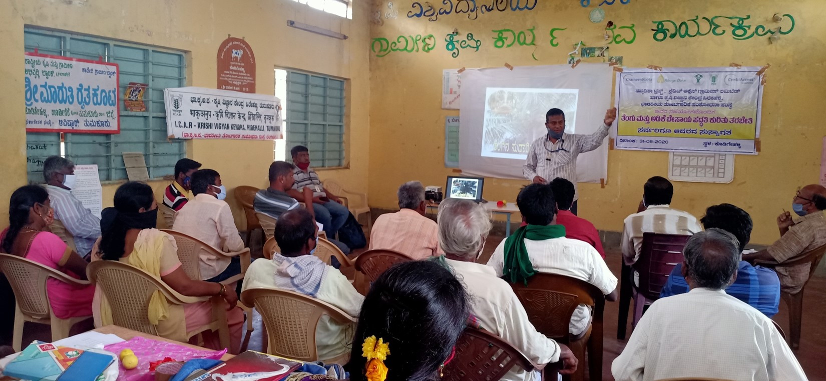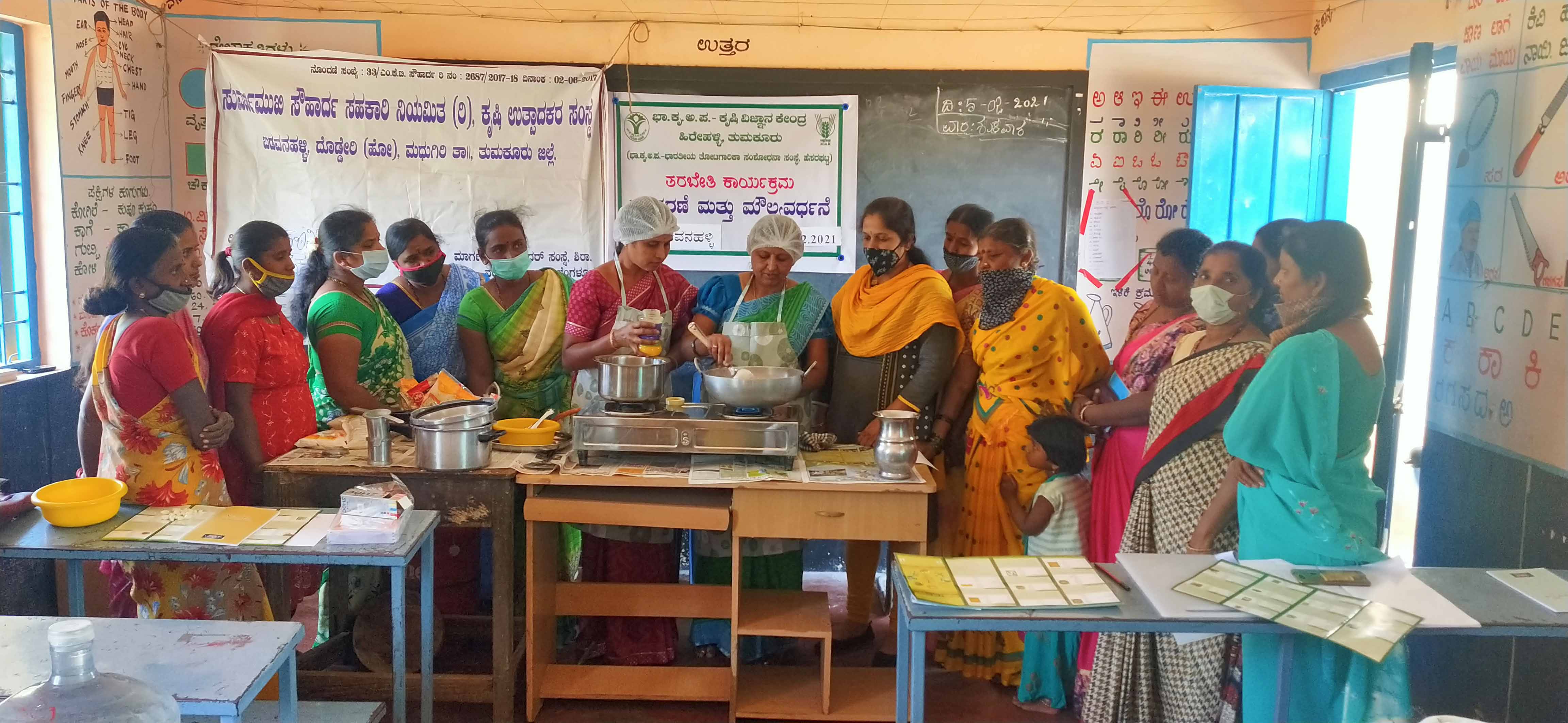 Off-campus training cum demonstration on Nutri-Garden was conducted on 23rd August 2021 at Chikkadoddavadi village of Koratagere Taluk. Mrs Radha R.Banakar, SMS-Home Science, KVK, Hrehalli explained the role of fruits and vegetables in daily diet to achieve nutrition security among…