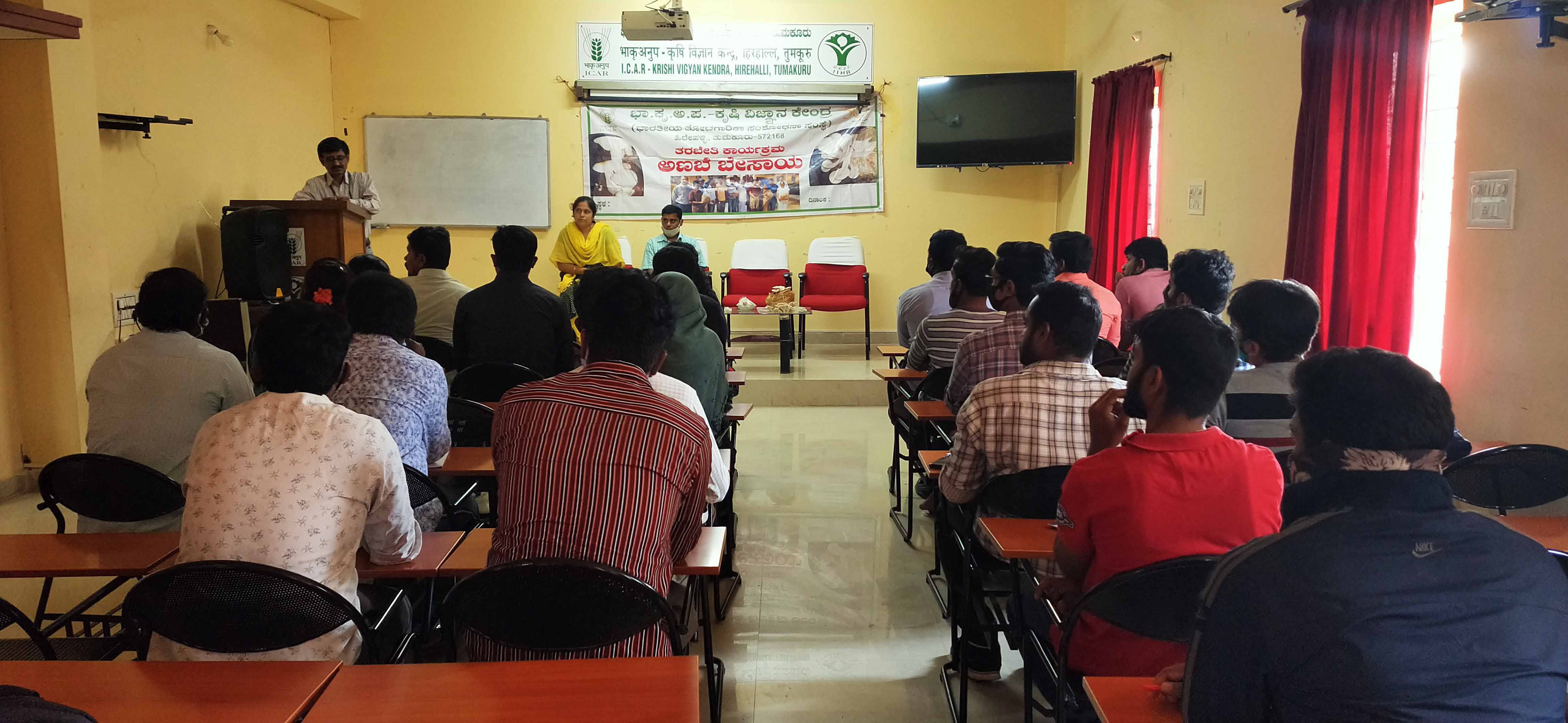 On-campus training on Oyster mushroom cultivation was conducted on 2nd November 2021 at Krishi Vigyan Kendra,Hirehalli.Mr Ramesh P.R, SMS-Soil Science delivered lecture on spawn production techniques. Mrs.Radha R.Banakar SMS- Home Science gave a lecture on nutritional importance of different kinds…