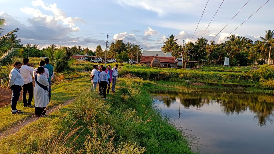 The NICRA Phase-II Lunching cum Annual Review 2021-22 & Action plan 2022-23 workshop under ICAR-ATARI, Zone-XI was organized in collaboration with CRIDA, Hyderabad during 13-14 June at ICAR- ATARI Bengaluru. After launching and inaugural session on 13.06.2022, the dignitaries and participants visited the TDC-NICRA village, D Nagenahalli, Koratagere taluk, Tumakuru district of Karnataka. Dr. Vinod Kumar Singh, Director, ICAR-CRIDA, Hyderabad, Dr. V. Venkatasubramanian, Director, ICAR-ATARI, Bengaluru. Dr. N. Loganandhanan, Head, KVK, Hirehalli, Mr. P.R. Ramesh, Scientist and nodal officer of NICRA, KVK, Hirehalli and Mr. J.M. Prashanth, Scientist, KVK, Hirehalli briefed about the interventions of resilient practices viz., water harvesting structures, dryland horticulture systems, custom hiring centre, seed and fodder production systems adopted by the farmers of D.Nagenahalli village during on-field visit.