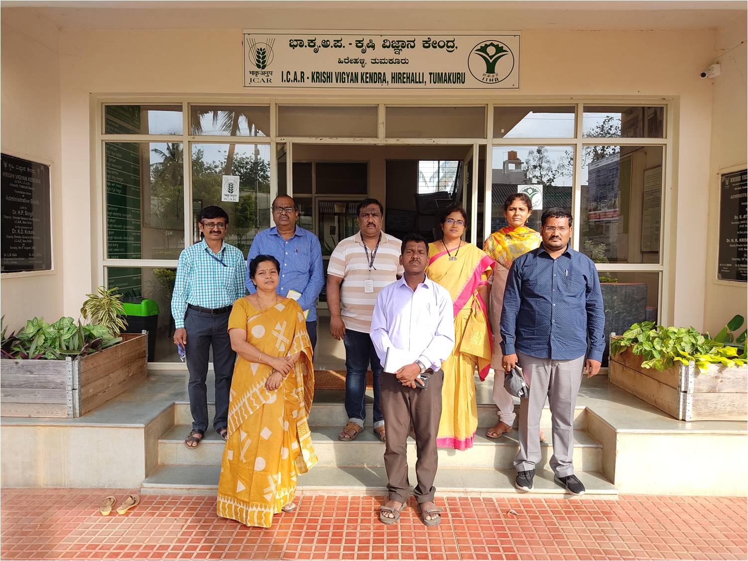 A team of KVK Scientists along with Dr.P.Rambabu, Director of Extension, ANGRAU visited ICAR-KVK Hirehalli on 15th March 2021. The team consists of 1) Dr.V.Sumathi, PC KVK Nellore as team leader, 2) Dr.P.Pedda Nagi Reddy, SMS (Hort.), KVK Utukur, 3) Dr.R.Prasanna Lakshmi, SMS (PP), KVK Kalikiri, 4) Dr.M.Sattibabu, SMS (Hort.), KVK Kondempudi, 5) Dr.K.Bhagyalakshmi, SMS (Home Science), KVK Amadalavalasa visited to demonstration units at instructional farm for cross learning. This programme was coordinated by Dr.Loganandhan, Head and Shri.K.N.Jagadish, SMS (Agril, Extn.) of KVK Hirehalli.
