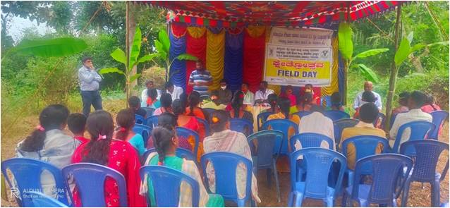 A Field day was organised by KVK, Hirehalli on 03.12.2020 on Integrated Crop Management in Chilli – Arka Harita in the field of Shri. Ramesh BM progressive farmer at Badavanahalli village of Madhugiri Taluka of Tumakuru District. Chief Guest Dr. N. Loganandhan Head, Krishi Vigyan Kendra Hirehalli addressed about KVK Activities and importance of Field day. Shri.Gopalaiah A, President, Swaranamukhi Farmers producer’s cooperative society Badavanahalli during his presidential address he stressed the need of implementing the improved technologies through KVK. Mr. Prashanth J. M. SMS (Horticulture) explained the improved production practices of Chilli and potentiality of ArkaHarita hybrid in Tumakuru district. Mr. Ramesh B.M. shared his experience in growing ArkaHarita during the field day. More than 60 Farmers and Farm women participated in the field day.