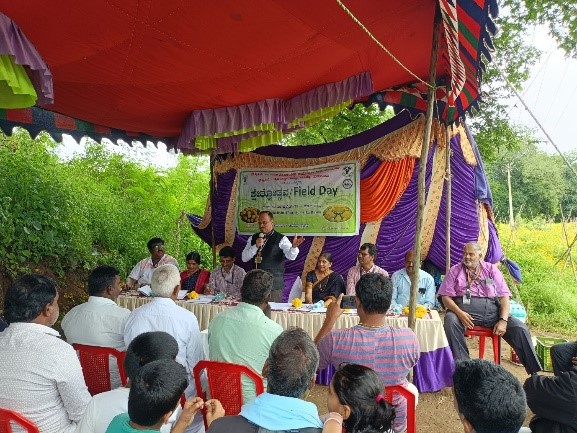 A highlight of the event was the special address by Shri Lakshminarayan Reddy, Progressive farmer who has successfully adopted Arka Bhanu. He shared his personal experience of cultivating the Arka Bhanu and spoke at length about its market potential, superior post-harvest value, and the ways it has positively impacted his income and livelihood. His testimony served as a motivational case study for other farmers, demonstrating how Arka Bhanu can serve as a game-changer in the rural economy of Pavagada.