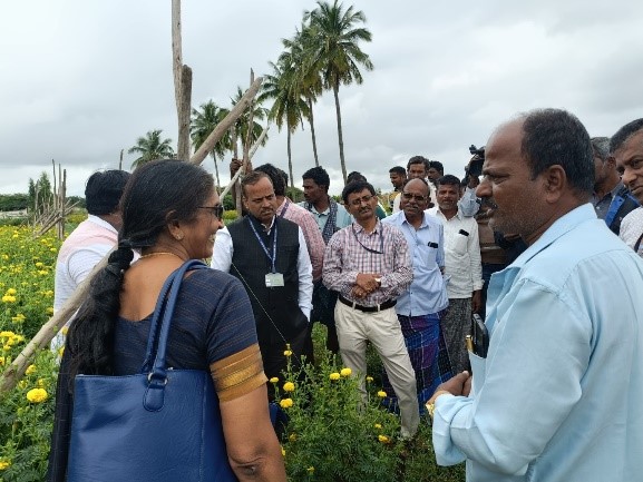 Dr. Naveen Kumar, Head, Division of Flower and Medicinal Crops, further elaborated on the need for farmers to diversify their crops by incorporating flowers like Marigold into their farming systems. He emphasized that flower crops can play a crucial role in stabilizing farmers’ incomes, particularly in regions like Pavagada, where traditional crops alone may not offer adequate returns.
