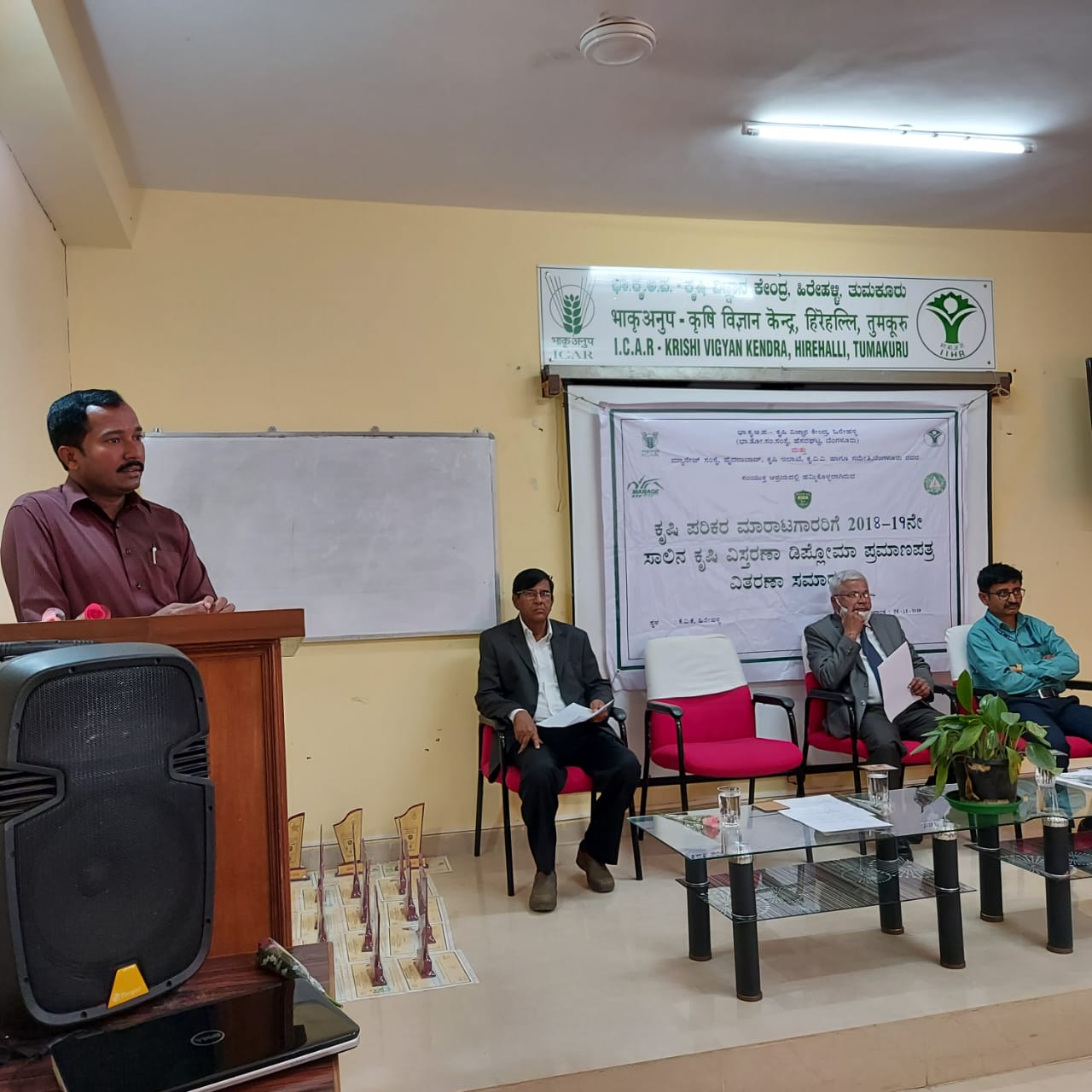 The Graduation Day of Diploma in Agricultural Extension Services for Input Dealers (DAESI) was conducted at ICAR Krishi Vigyan Kendra, Hirehalli, Tumakuru on 28th December 2020. The final Diploma certificates were issued from the National Institute for Agricultural Extension Management (MANAGE), Hyderabad.