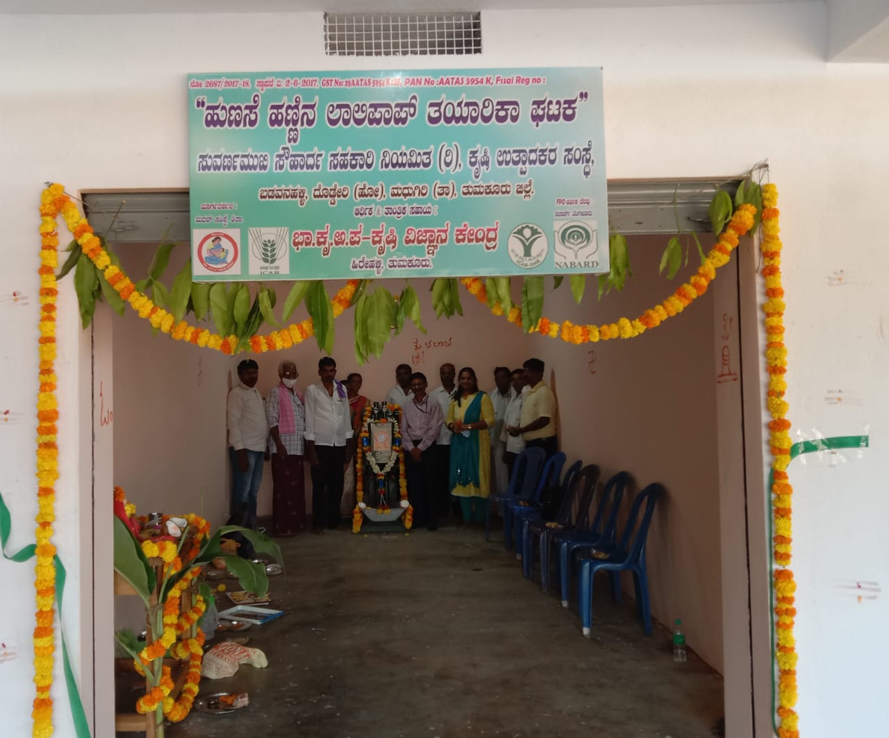 Tamarind pounding machine was purchased and handed over to suvarnamukhi FPO, Badavanahalli village, Madugiri taluk under EDP programme on tamarind processing, value addition and market linkage. Smt Keerthi Prabha, DDM, NABARD, Tumakuru inaugurated the tamarind lollipop making unit. This programme was attended by Dr. Loganandhan.N, ICAR-KVK, Hirehalli, Tumakuru.