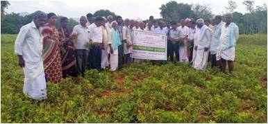 Groundnut is an important oilseed crop grown in kharif /summer in Tumakuru district. The farmers of Pavagada taluk have been growing this crop for many years with available local variety (TMV-2), which are ungraded, having low vigour, viability and susceptible to many of the pests & diseases. In addition to this, most of the farmers are not following the recommended package of practices which reflects on the yield & quality of groundnut. TMV-2 variety is very much susceptible for leaf spot and leaf miner and suffers yield loss up to 33%.