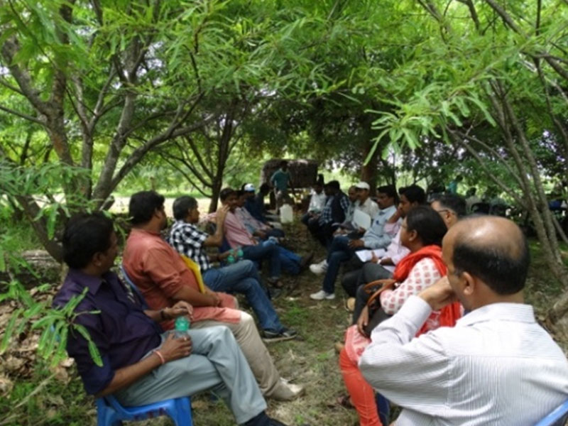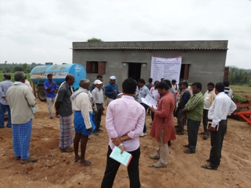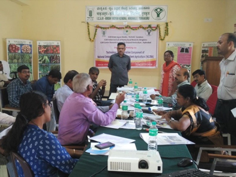 Earth Care Award of CEE, Ahmedabad, the team members and Dr. Sreenath Dixit, Director, ATARI, Dr. D.V.Srinivasa Reddy, Principal Scientist(Agronomy), ATARI were visited KVK, Hirehalli on 17.7.2016. Dr. N.Loganandhan, Sr. Scientist and Head, KVK, Hirehalli welcome the team members and presented the NICRA interventions by KVK Tumakuru Then team visited NICRA Village, D.Nagenahalli, Koratagere, Tumakuru and interacted with farmers at fields, farm pond, check dam, CHC centre, AWS Station, livestock, VCRMC members.