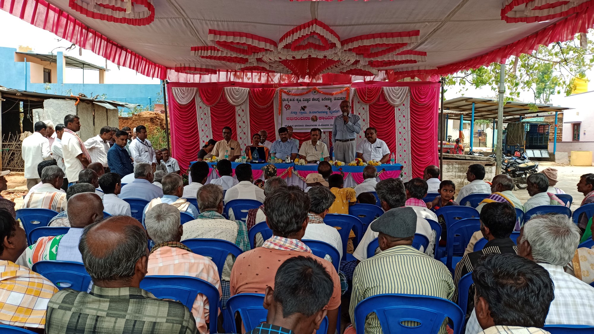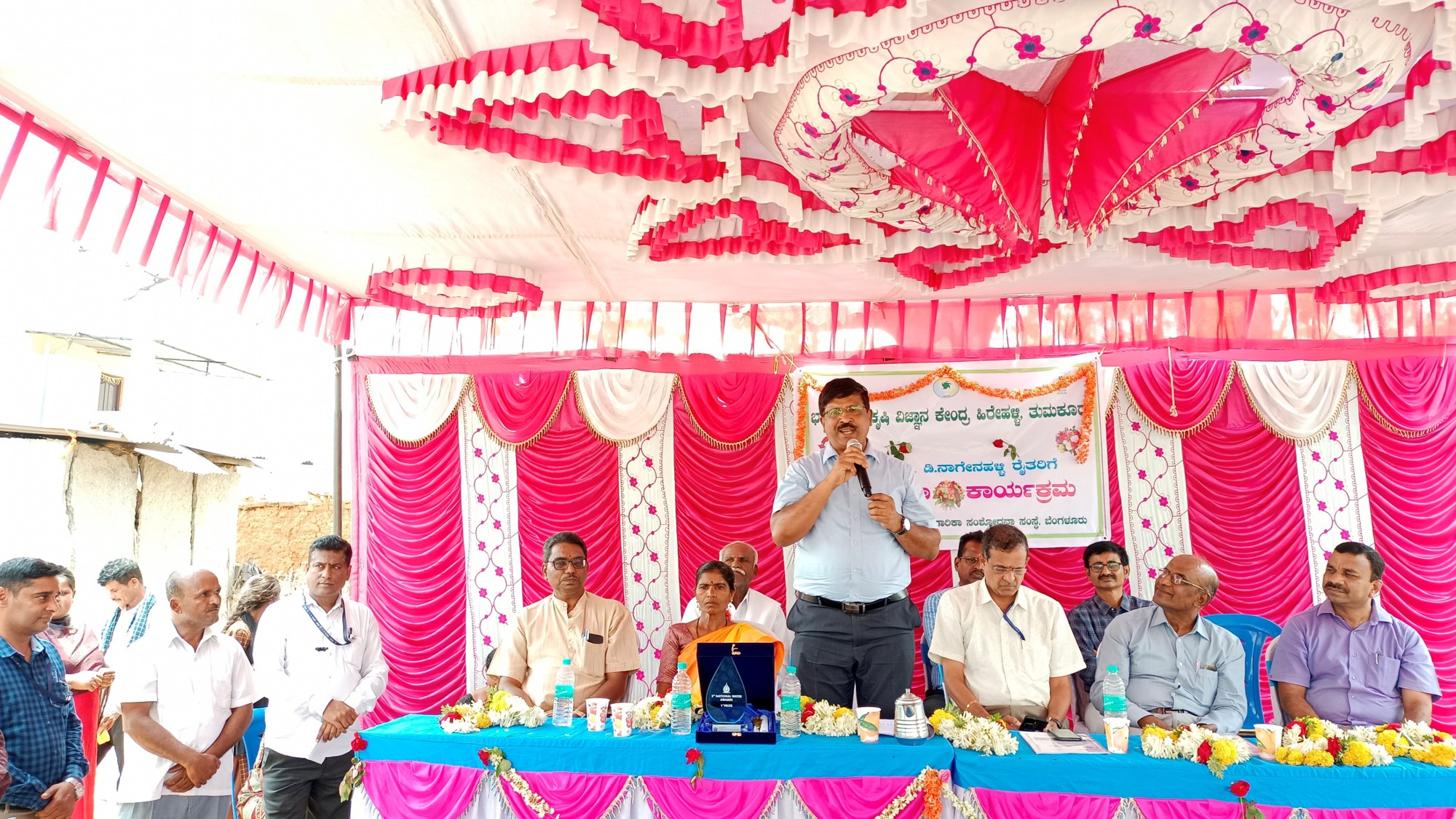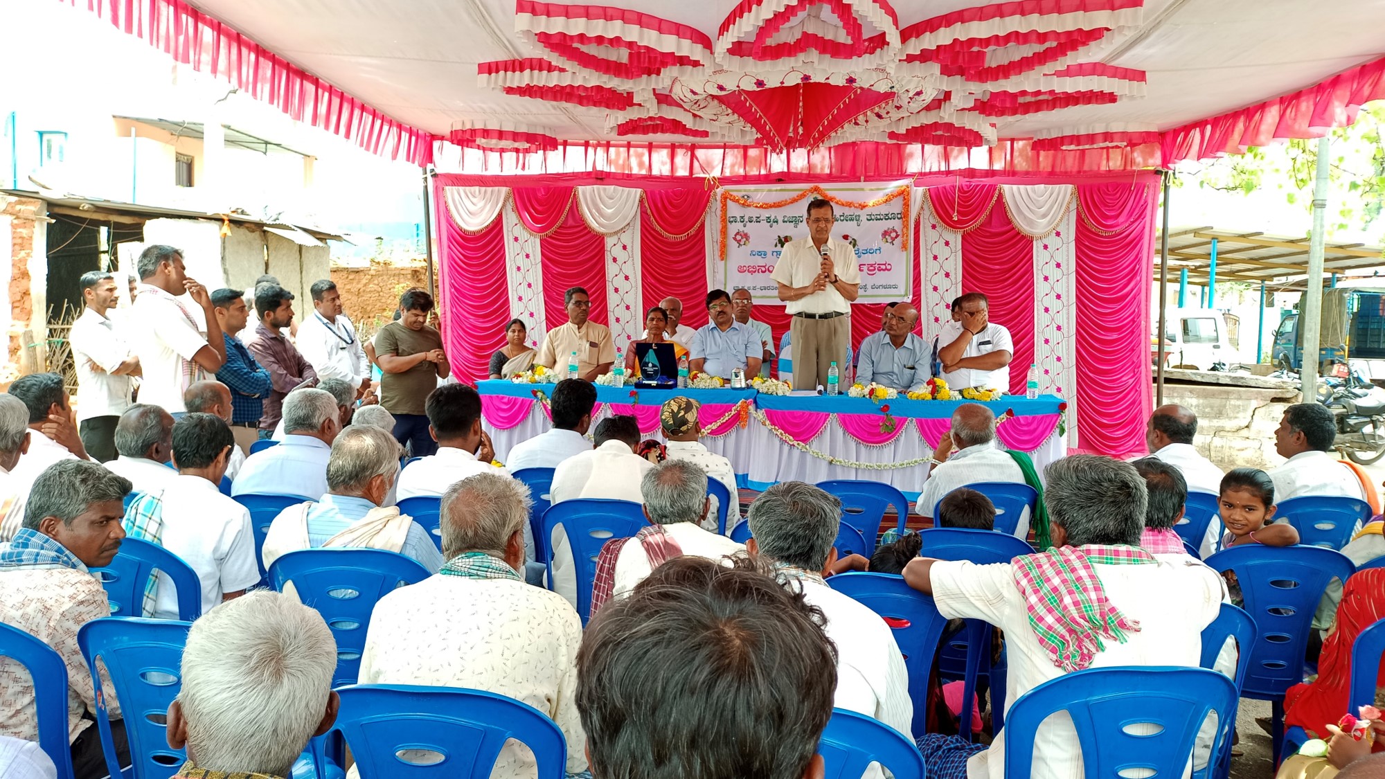 Mr. Ramesh.P.R, Subject Matter Specialist (Soil Science) has welcomed the farmers and dignitaries. Dr.B.N.Srinivasa Murthy, Director, ICAR-IIHR, Bengaluru has explained the important technologies available at IIHR for the farmers to adopt them. He also motivated famers to participate in FPO and improve the FPO. Dr.V.Venaktasubramanian, Director, ICAR-ATARI, Bengaluru has explained the importance of adopting Natural Resource Management in agriculture to combat the climatic vulnerabilities. Dr.L.B.Naik praised the farmers for adopting climate resilient practices. Dr. N.Loganandhan, Principal Scientist and Head, ICAR-KVK has explained a few success stories of farmers who have adopted climate smart agriculture practices and improved their livelihood. Mr. Prashant.J.M, SMS (Horticulture) has assisted in conducting the programme. Mr.Nagaraj, ADA, Koratagere, Director, Deputy Director, PDO and members of Kolala Grama Panchayat and Directors of Gramachetana FPCL were participated in the programme. D.Nagenahlli farmers were congratulated by the Dignitaries for their participation in the adoption of climate smart agriculture practices. About 148 farmers were participated in the programme.