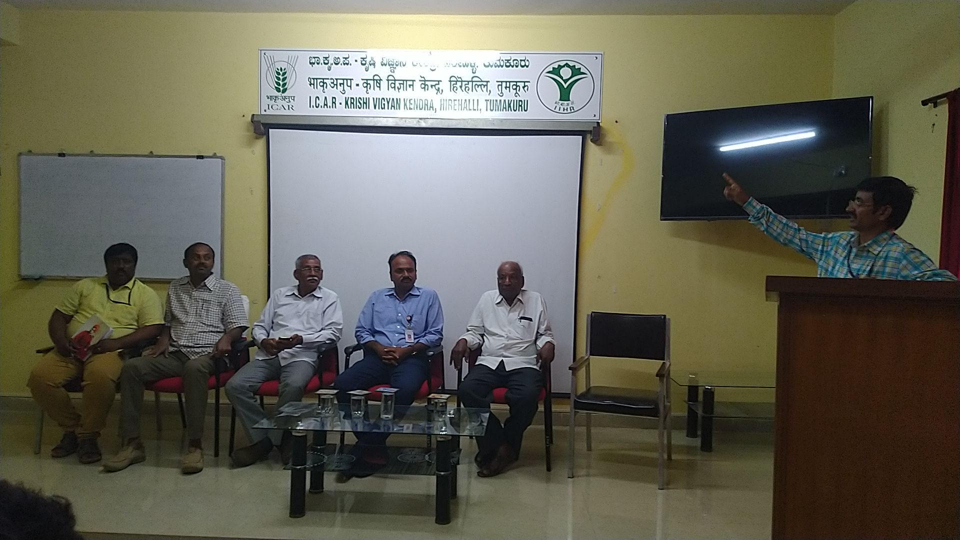 A hands-on training programme on beekeeping was organized on Jan 28, 2019 at ICAR- Krishi Vigyan Kendra(IIHR), Tumakuru by Dr PVR Reddy, Principal Scientist ICAR-IIHR,Bengaluru for the farmers of ICAR-KVK adopted village of Tumakuru. This training aimed at enhancing the awareness among farmers about beekeeping and the pollination services offered by honeybees. During the day, farmers trained in maintenance of the beehives, beekeeping accessories and live bee colonies. Preliminary information on how to start beekeeping, management of beehives during dearth periods, the economics of beekeeping, bee products and role of bees in crop pollination was explained to the farmers.